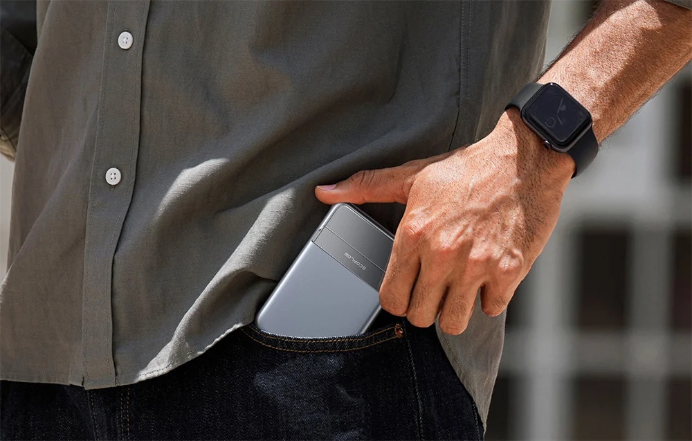 EcoFlow RAPID mõõtmed on 108 × 70 × 13,9 mm ning kaal alla 165 grammi. Tänu õhukesele ja kergele disainile mahub see mugavalt kotti või taskusse, ilma et lisaraskust tekitaks.
