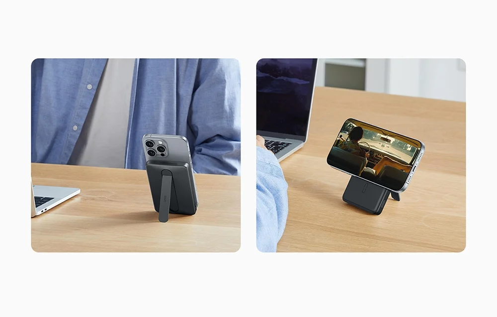 MagSlim akupank paistab silma üliõhukese korpuse ja integreeritud tugijalaga, mille disain on pälvinud tunnustusi (Design Award 2023, Red Dot 2023). Reguleeritav kaldenurk võimaldab seadistada sobiva vaatenurga nii tööks kui igapäevaseks kasutuseks.